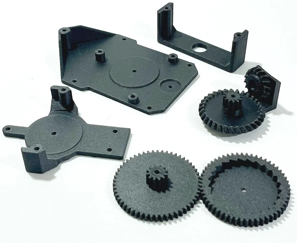 PET-CF is a mixture of PET and carbon fibers. The addition of carbon fibers to PET provides high levels of mechanical performance. Thanks to its rigidity, the PET Carbon is highly valued in the production of special parts, notably in the paramedical and automotive fields. Automobile, Aerospace, End-use part, Jigs & Fixtures, Manufacture aids, Electrical and electronics (E&E) industry. Better impact resistance and wear resistance than regular PETG material. Suitable for applications requiring torsional, tensile, and impact strength.
